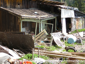 Nach Tunnel 1 ein Bahnwärterhaus mit schnatternden Gänsen, einer Katze, großes Durcheinander. Rauch kommt aus dem Schornstein. Wirkt wie ein Zigeunerplatz. Schade daß alles so verfällt, von einer Nutzung bspw. des Bahnhofs Schelleberg als Jausenstation ist nach wie vor nichts in Sicht.