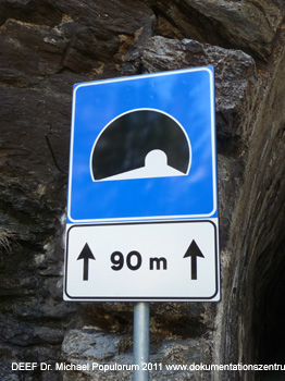 Tunnel 1: Länge 130 m plus Steinschlaggalerie am südlichen Ende